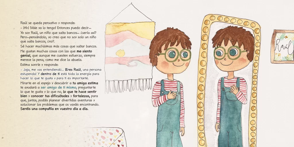 «Mi amiga Estima» es un cuento íntimo y educativo que ayuda a los niños a conocer y conectar con su autoestima. A través de Raúl, un niño de 7 años, descubrimos cómo “Estima” —su voz interior— le acompaña en los momentos de esfuerzo, emoción, inseguridad y logro, recordándole quién es y todo lo que ya ha conseguido.